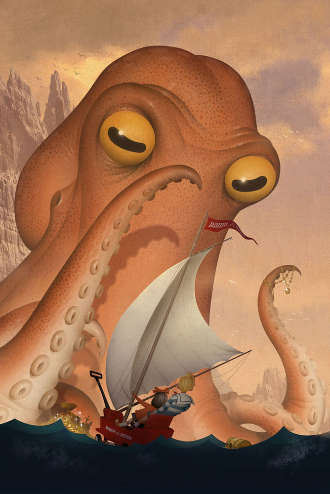 This year, along with the many awards of merit from Spectrum 24, 3x3 Annual 14, American Illustration, and more, Bill has just finished a large collection of paintings for an illustrated edition of George Orwell's Animal Farm, which has been featured in Communication Arts Illustration Annual, Society of Illustrators 60 New York, and won a gold medal in Society of Illustrators 56 West. Also from SI West, a gold medal for his poster "Savages," for Steppenwolf Theater, A silver medal for "A Time for Reflection" for Strategic Insight, along with his Radio Flyer poster, "See Octopus Shiny Treasure Bay" receiving the Patrick Nagel Award of Excellence. Bill was also chosen to be this years chair for the 3x3 illustration shows in 2018.