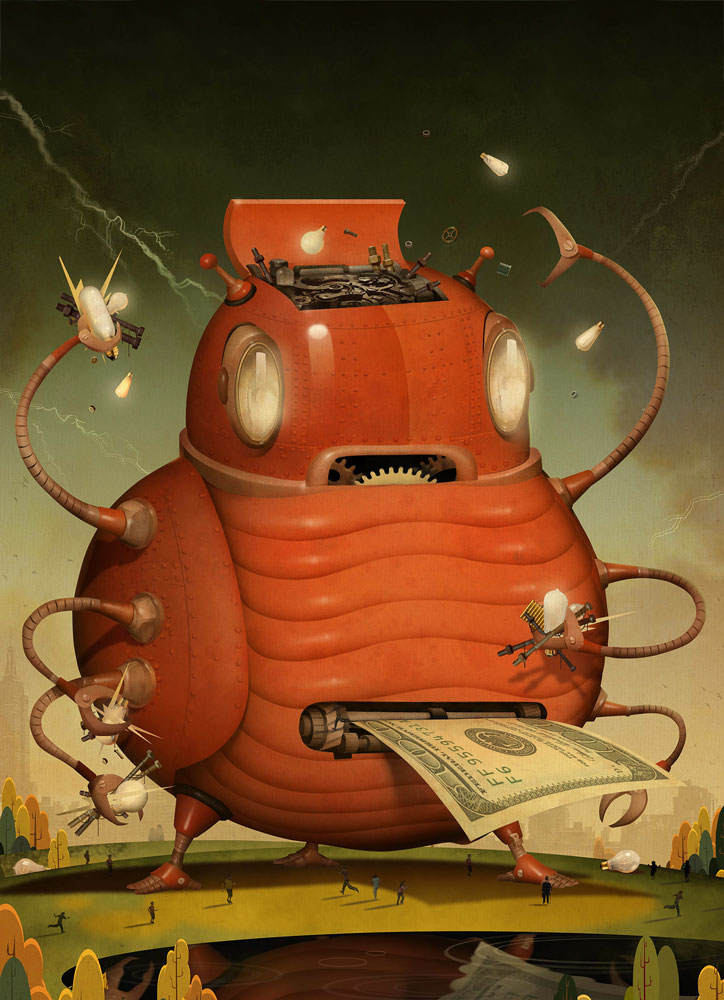 Chris Buzelli is an artist from Chicago who currently lives and works in New York. Since graduating from Rhode Island School of Design his illustrations have been published in many high-profile publications and he has worked for a vast array of prestigious clients. His work explores conceptual themes, incorporating intense color palettes, incisive symbolism and stylized characters to depict his folkloric stories.