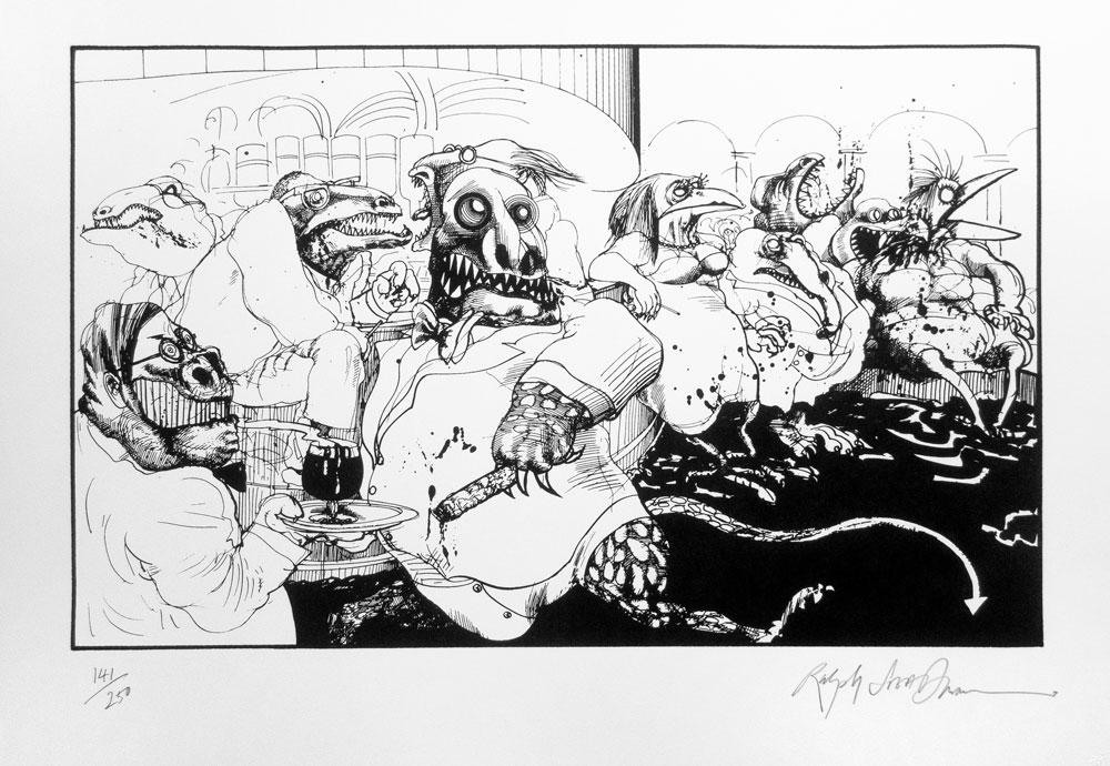 Ralph Steadman was born in 1936. He started as a cartoonist and through the years diversified into many fields of creativity. He has illustrated such classics as "Alice in Wonderland,, "Treasure Island" and "Animal Farm."